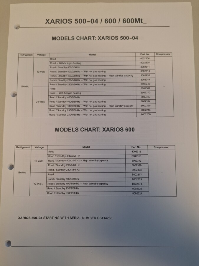 Service Parts List Xarios 500-04